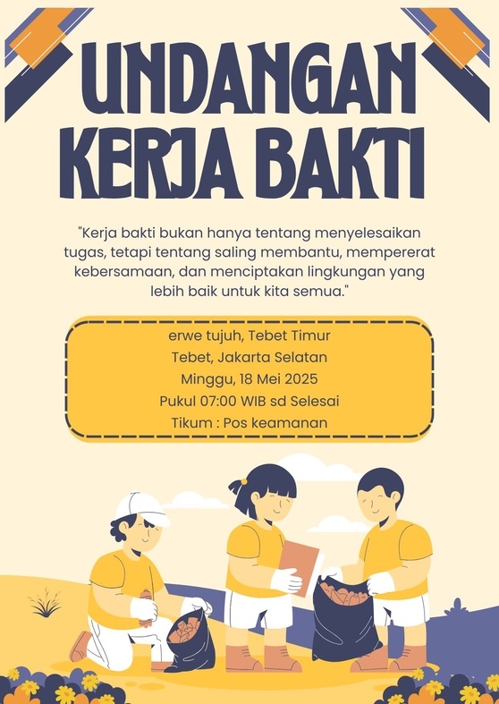 “Kerja bakti bukan hanya tentang menyelesaikan tugas, tetapi tentang saling membantu, mempererat kebersamaan, dan menciptakan lingkungan yang lebih baik untuk kita semua.”